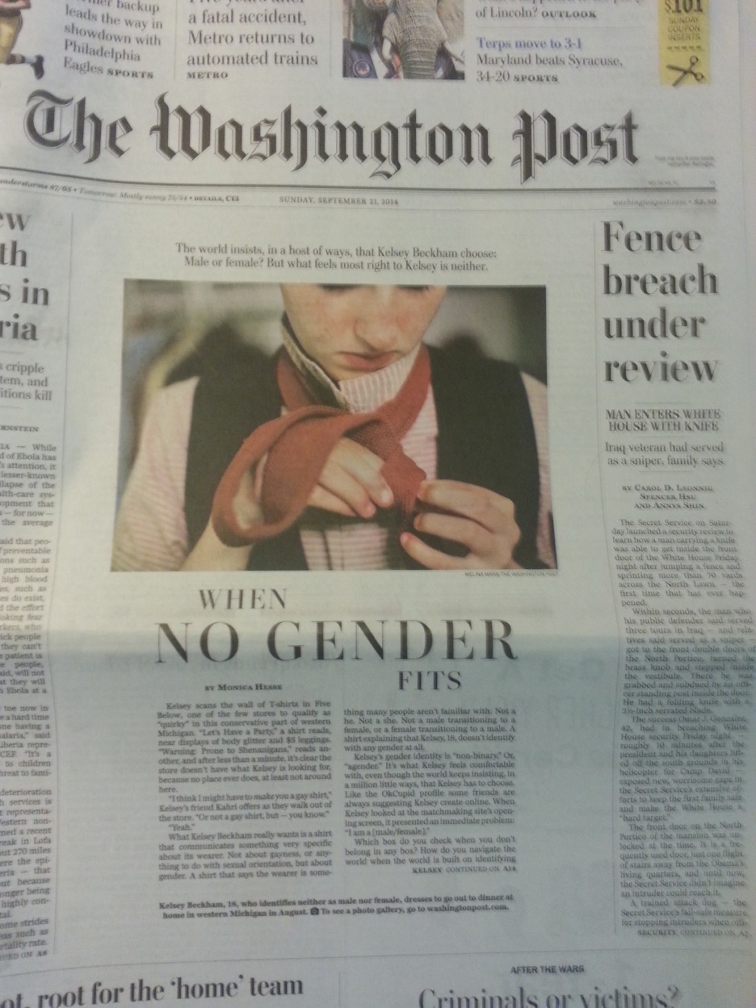 an article about an agender person’s identity ON THE FRONT PAGE OF THE WASHINGTON POST