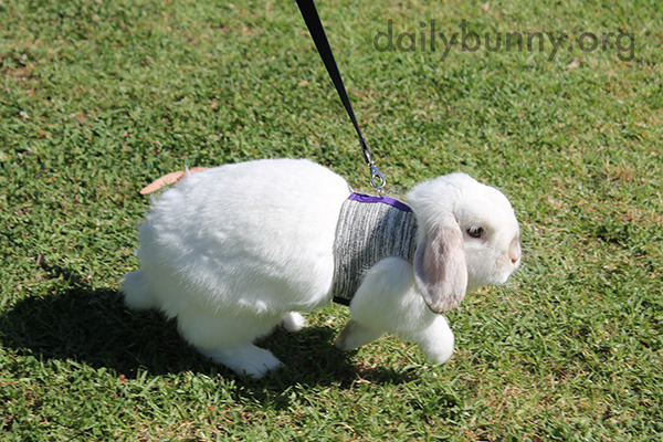 Thought we would update you on Peanut latest Park adventure. Peanut is still getting used to wearing a harness as it only arrived a few weeks ago, but she has become a massive fan of hopping around at the park and enjoys her human following closely behind her.