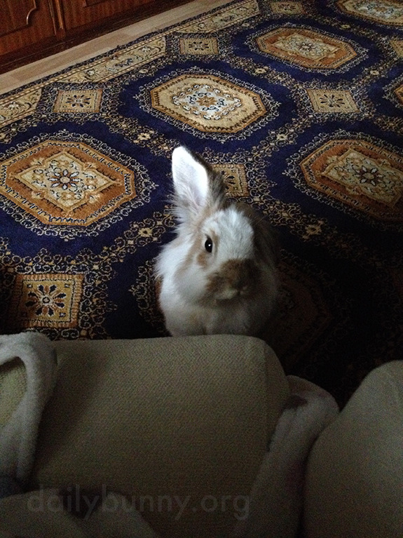 Thanks, Ana and bunny Chop! Ana writes that, here, Chop “smells the banana I’m trying to peacefully eat.”