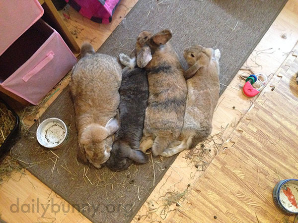 Thanks, Lucy and bunnies (left to right) Amber, Theo, Lilly, and Arthur! Lucy writes, “They’re all besotted with each other! Definitely the more the merrier with these lot!”