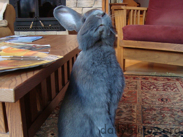 Thanks, Kathy and bunny Potter! Kathy writes, “Potter the Flemish Giant [is] checking out space of the sofa (for a nap).”