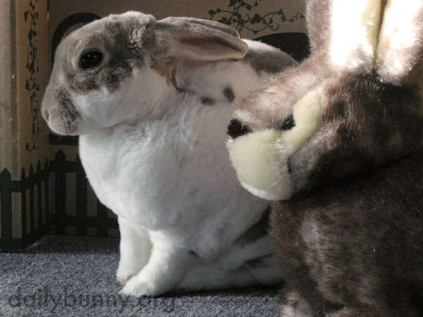 Bunny and Her Stuffed Friend Sit in Contemplative Silence