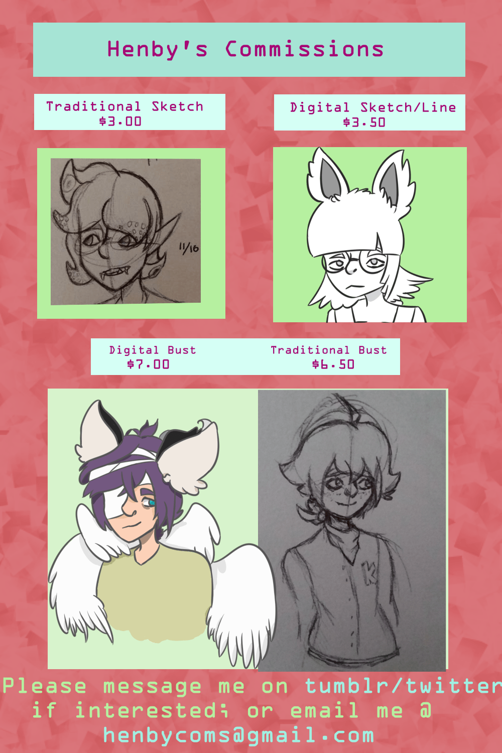 My twitter handle is henby_, so if you decided to message me there please do it through DMs! If you wish to email me, shoot me one through henbycoms@gmail.com please!!